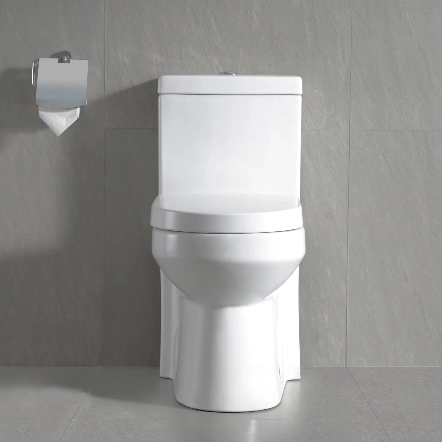 Compact One-Piece Round Toilet with High-Efficiency Flush – Space-Saving Floor Mounted Toilet (Seat Included)